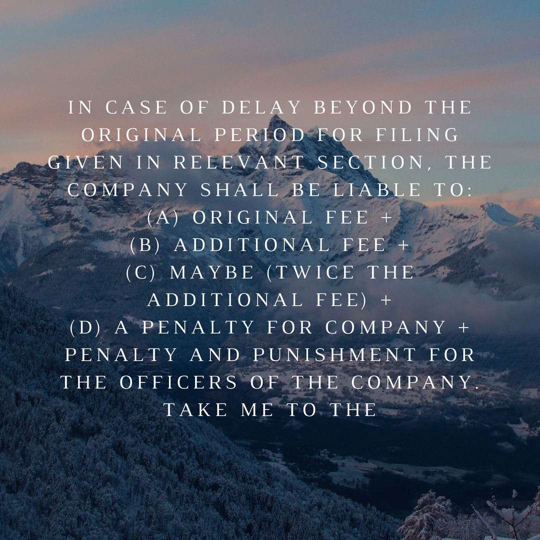 In case of delay beyond the original period for filing given in relevant section, the company shall be liable to: